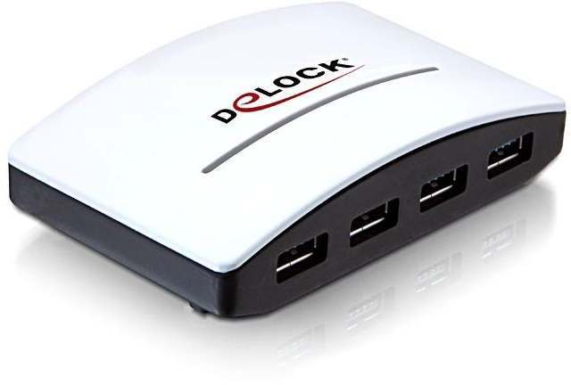 Kompakte Bauweise mit vier USB 3.0 Anschlüssen für schnellen Datentransfer ohne externe Stromversorgung.