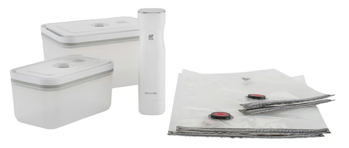 Das Zwilling Fresh & Save Vakuum-Starter-Set ermöglicht eine einfache und effektive Vakuumierung von Lebensmitteln, wodurch diese länger frisch bleiben. Die Vakuumpumpe ist benutzerfreundlich und die Beutel bieten eine gute Haltbarkeit. Allerdings gibt es Bedenken hinsichtlich der Platznutzung der Boxen, der Reinigung der Tüten und der langfristigen Haltbarkeit im Gefrierfach.