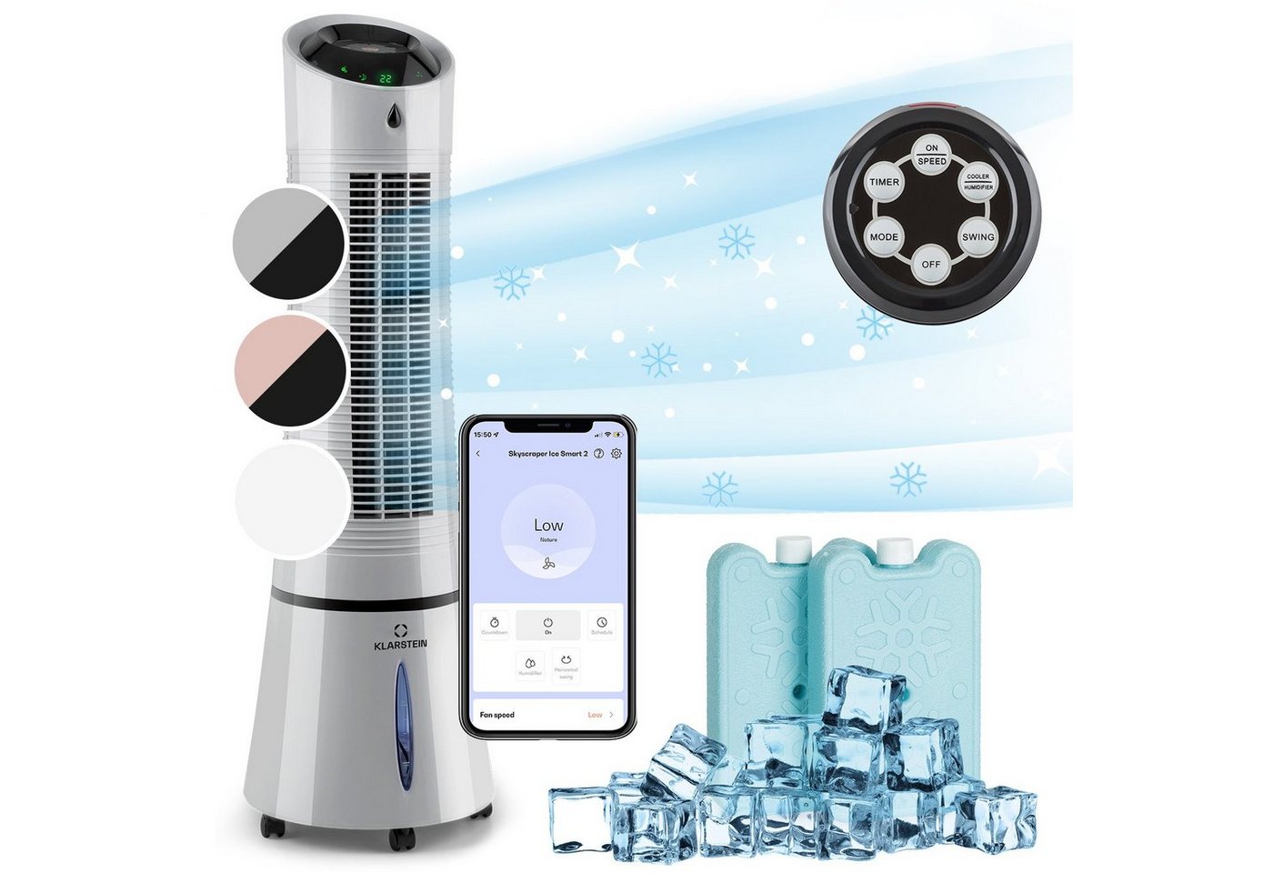 Das Klarstein Ventilatorkombigerät Skyscraper Ice Smart 4-in-1 Luftkühler & Ventilator bietet eine effektive Möglichkeit, Ihre Räume zu kühlen und gleichzeitig für frische Luft zu sorgen. Mit einer einfachen Bedienung und leisem Betrieb ermöglicht dieses Gerät eine angenehme Raumtemperatur ohne störende Geräusche. Der integrierte Luftfilter trägt dazu bei, die Luftqualität zu verbessern und unerwünschte Partikel aus der Umgebungsluft zu filtern.