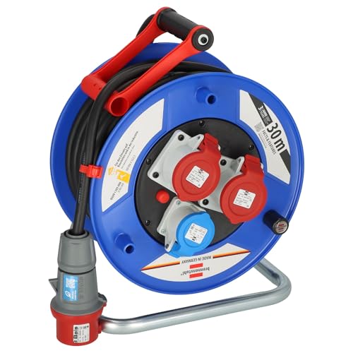 Brennenstuhl Garant CEE IP44 Industrie-/Baustellen-Kabeltrommel (30m Kabel in schwarz, Spezialkunststoff, Made in Germany)