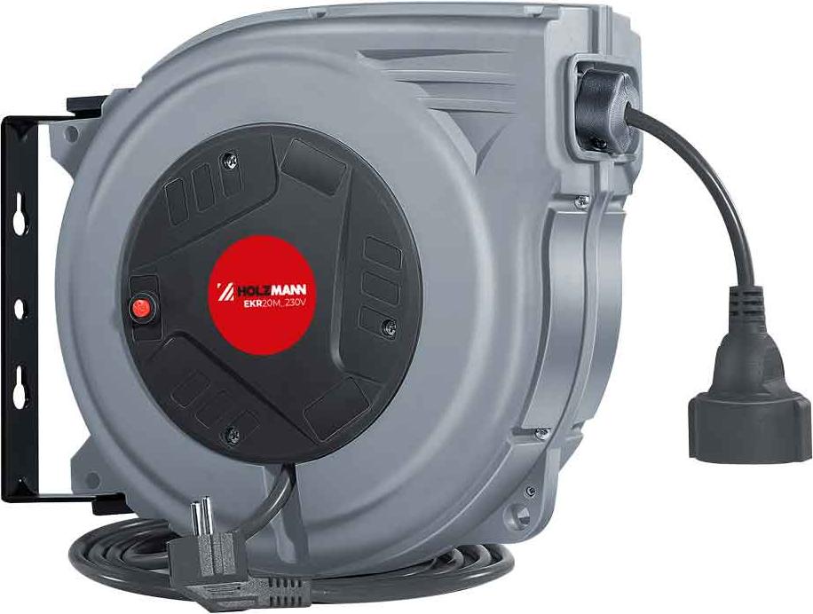 • Der Elektrokabel-Aufroller EKR20M 230V von Holzmann sorgt für mehr Sicherheit in Ihrer Werkstatt oder Garage, indem er Stolperfallen vermeidet