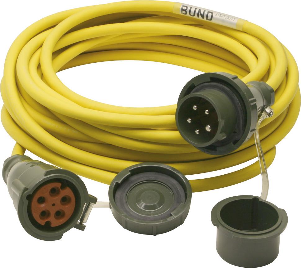 Dönges Verlängerungskabel THW-Version 400 V16 A, 15 m, hochflexibles Gummikabel, wasserdichte Steckverbindungen, silikonfrei, CEE, gelb
