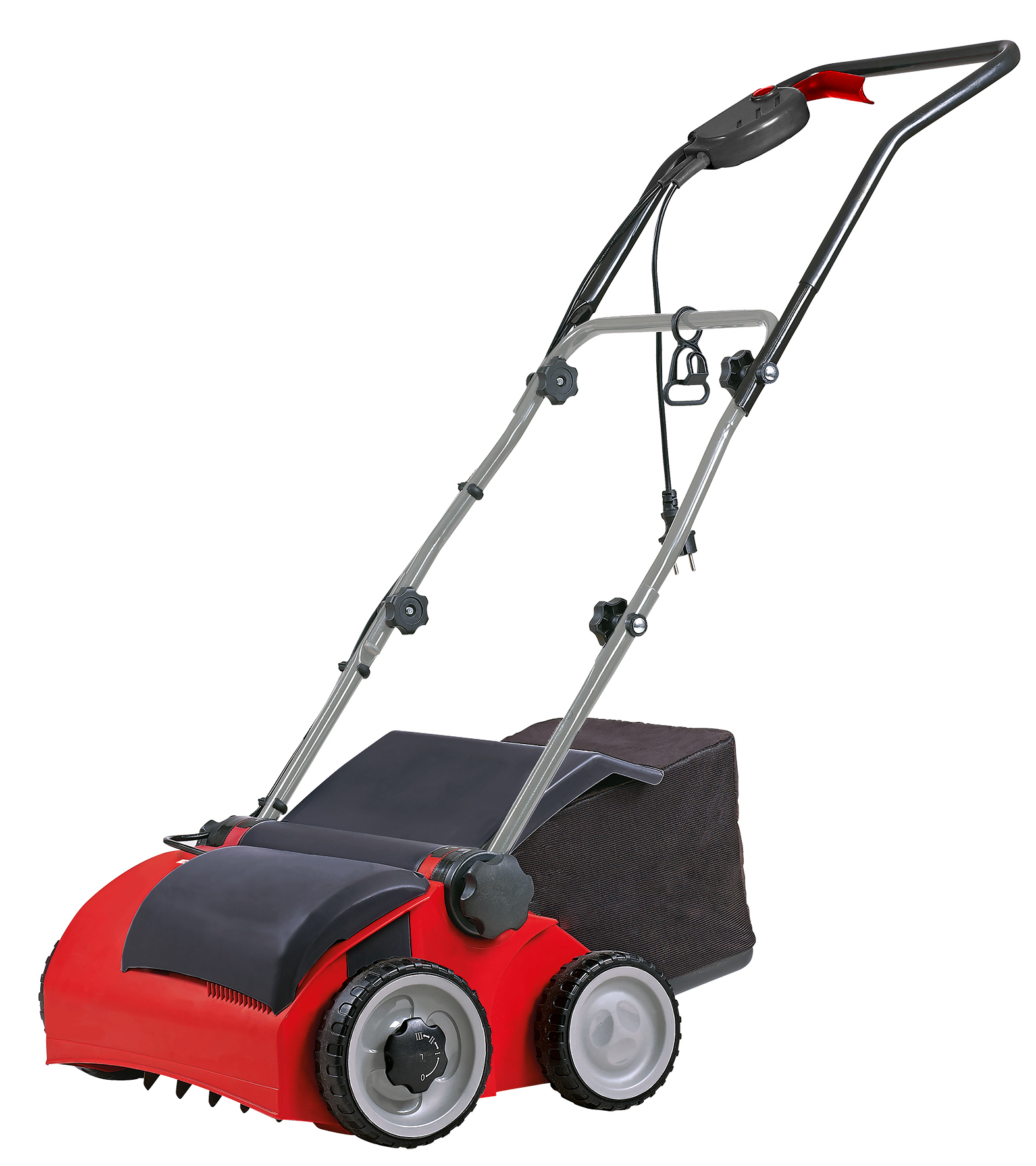 Das 3-in-1-Gerät ermöglicht effektives Vertikutieren, Lüften und Fangen mit einfacher Handhabung.
