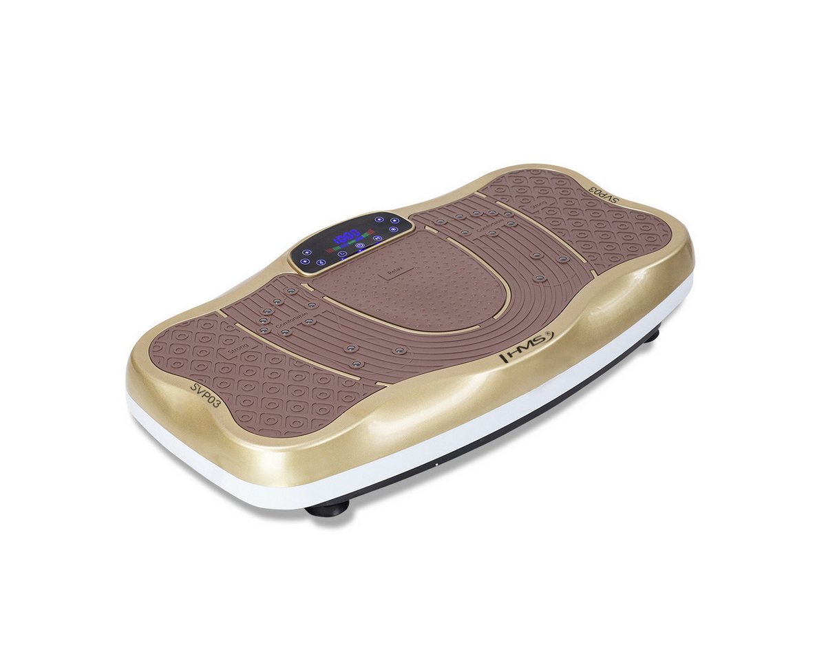 HMS SVP03 Vibrationsplatte Massageplatte200 W, 3 Intensitätsstufen, 4 Trainingsmodi, gold mit Fernbedienung und Trainingsbändern