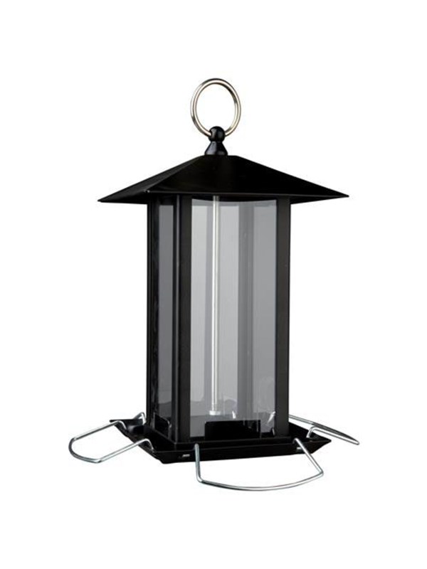 "Stabiler, wetterfester Futterspender mit ansprechendem Design und vier Landeplätzen, ideal für die Fütterung verschiedener Vogelarten im Garten."