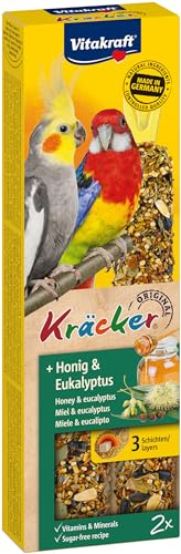 Vitakraft Kräcker Großsittich 2 x 2 Sticks Honig & Eukalyptus, ergänzendes Vogelfutter mit wertvollen Vitaminen, zuckerfreie Rezeptur, 180 g