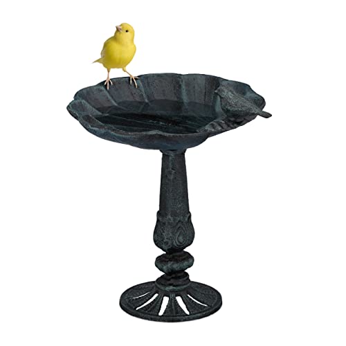Relaxdays Vogeltränkestehend, Vogelbad aus Gusseisen, winterfest, Wasserschale mit Ständer, Vogelbecken, schwarz-grün, 1 Stück