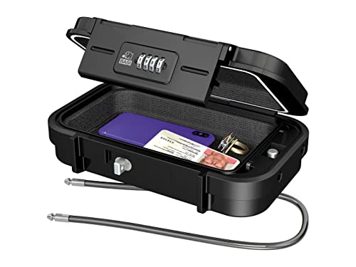 BASI | Mobiler Safe | Tragbare Sicherheitsbox mit Zahlenschloss | 4-stellige Zahlenkombination | abnehmbares Sicherungskabel | Mini-Tresor mit Drahtseil | L24 x B14 x H5,8 cm | IPX5 Wasserschutz