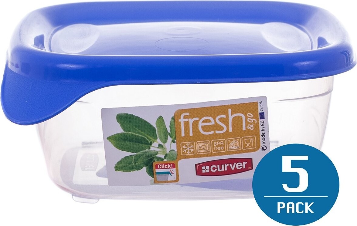 Curver Vorratsdose "Fresh&Go" 0,25l quadratisch /blau/ transparent - Stapelbar und platzsparend mit glänzendem Deckel