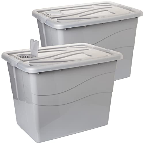 Aufbewahrungsbox mit Deckel Groß XXL2 Stück Aufbewahrungsboxen, 80 L Boxen aufbewahrung, Kisten aufbewahrung mit Deckel, Rollen und Clip-Griffen, Plastikbox mit Deckel Groß, Model: Tina, Farbe Grau