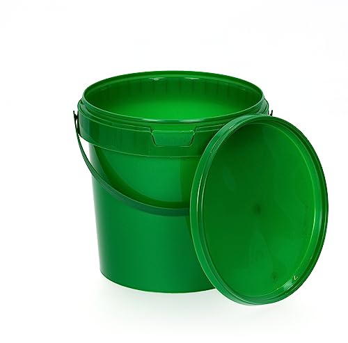 BenBow Eimer mit Deckel 1l grün 5X 1 Liter - lebensmittelechtstabil, luftdicht, auslaufsicher, geruchsneutral - Aufbewahrungsbehälter aus Kunststoff, mit Henkel - leer