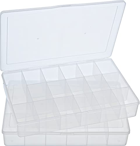 • Die transparenten Boxen haben eine Größe von ca. 27 cm x 18 cm x 4 cm und enthalten insgesamt 16 Fächer in verschiedenen Größen