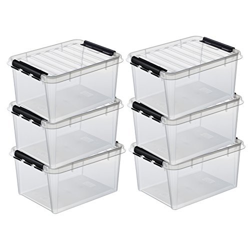 6x Aufbewahrungsbox stapelbare Box Smart Store Classic 31 transparent mit Deckel & Klickverschluss
