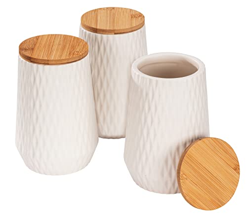 WENKO Aufbewahrungsdose Diamondmodernes 3er Set Keramik-Dosen mit Bambusdeckel und eleganter Rauten-Struktur zur Aufbewahrung in Küche oder Haushalt, Fassungsvermögen jeweils 0,6 Liter, Weiß/Braun