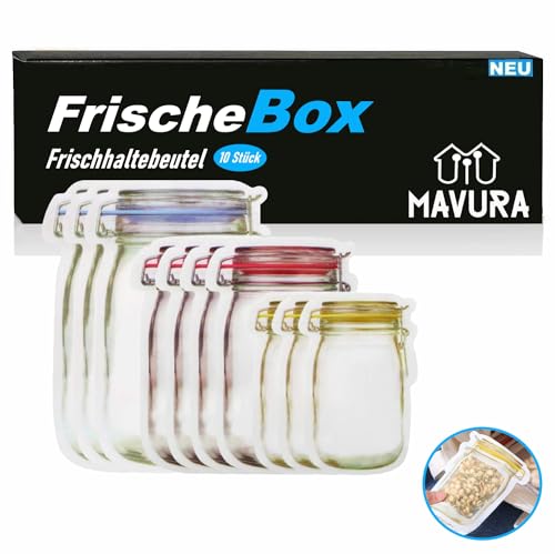 MAVURA FrischeBox Aufbewahrungsbeutel Lebensmittelboxen10er Set (Silikon Lebensmittelbeutel Frischhaltebeutel), Gefrierbeutel Frischhaltedosen - luftdicht, nachhaltig, vielseitig einsetzbar