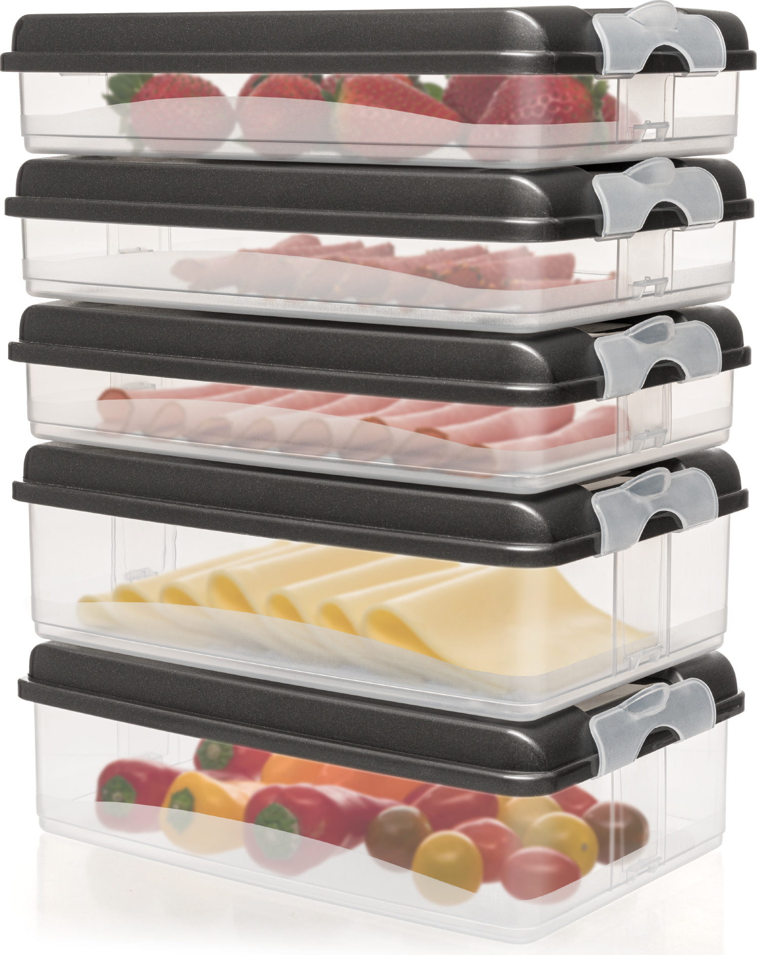 Hausfelder Aufschnittdosen für KühlschrankWurst Aufbewahrung mit Deckel, BPA-frei, stapelbar, spülmaschinengeeignet, Anthrazit, 10-teilig