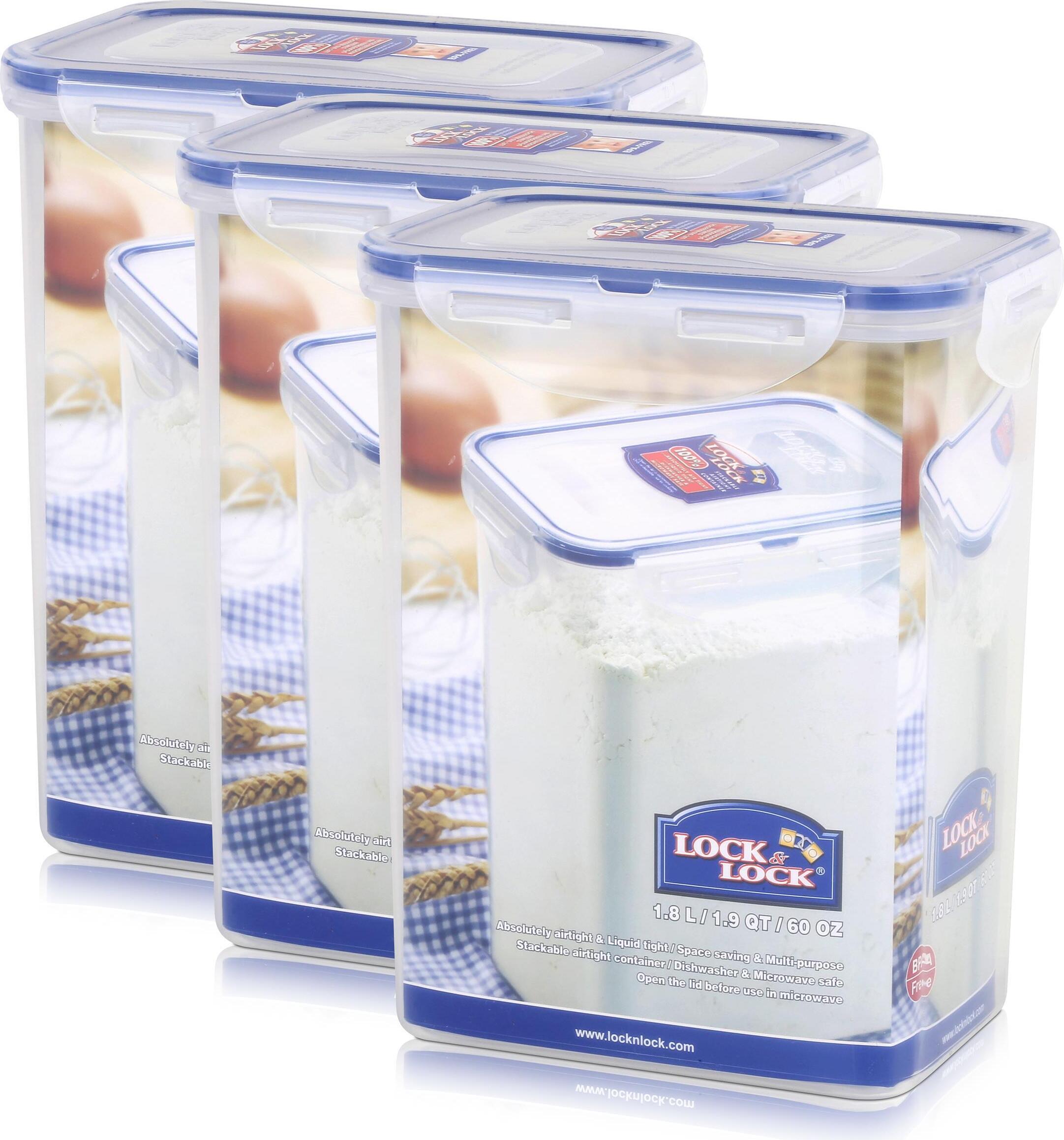 Lock & Lock HPL813 Vorratsdose 1,8L - Luft und Wasserdicht - rechteckig (3er Pack)