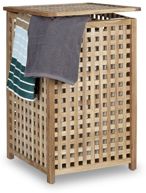 Der Wäschesammler aus Walnussholz bietet mit einem Fassungsvermögen von 75 Litern ausreichend Platz für Ihre Wäsche. Die moderne Gitteroptik und die praktische Abdeckung sorgen für ein harmonisches Erscheinungsbild und zusätzliche Ablagefläche. Der herausnehmbare Wäschesack erleichtert den Transport zur Waschmaschine. Mit stabiler und robuster Konstruktion ist dieser Wäschesammler sowohl funktional als auch langlebig. **Highlights** - 75 Liter Fassungsvermögen: Viel Platz für Wäsche - Stabile und robuste Konstruktion: Langlebig und zuverlässig - Praktische Abdeckung als zusätzliche Ablagefläche: Mehr Stauraum im Bad oder Schlafzimmer - Herausnehmbarer Wäschesack: Einfacher Transport zur Waschmaschine - Hochwertige Verarbeitung aus Walnussholz: Natürliche Optik und Funktionalität **Produkteigenschaften** - Material: Walnuss Holz, Baumwolle, Polyester - Außenmaß: ca. 67,5 x 45,7 x 45,7 cm - Innenmaß: ca. 60 x 39 x 31 cm - Gewicht: 6,1 kg - Klappbarer Deckel - Großes und geräumiges Design **Lieferumfang** - Wäschesammler in Einzelteilen - 1 Wäschesack inkl. Aufhängung - Aufbauanleitung