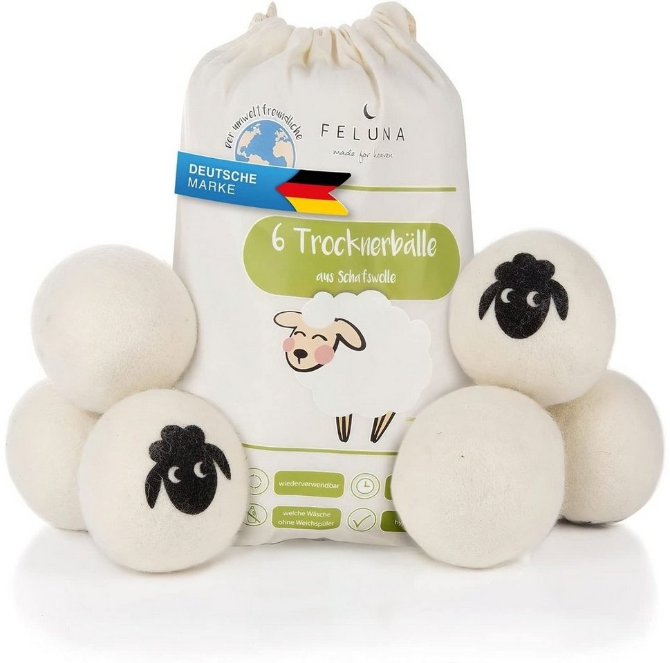 | Name | Feluna Wäschekugel Öko Trocknerbälle für Wäschetrockner (6er Set), Biologischer Weichspüler aus 100% Schaf-Wolle |