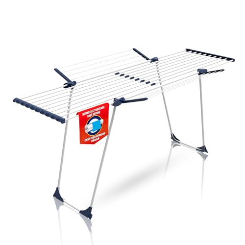 Das Produkt bietet eine stabile und standfeste Konstruktion, die sich ideal für das Trocknen von Wäsche eignet. Mit einer beeindruckenden Trockenlänge von 28 Metern ermöglicht es, große Mengen an Wäsche effizient zu trocknen. Die einfache Möglichkeit des Zusammenklappens sorgt dafür, dass der Wäscheständer platzsparend verstaut werden kann.
