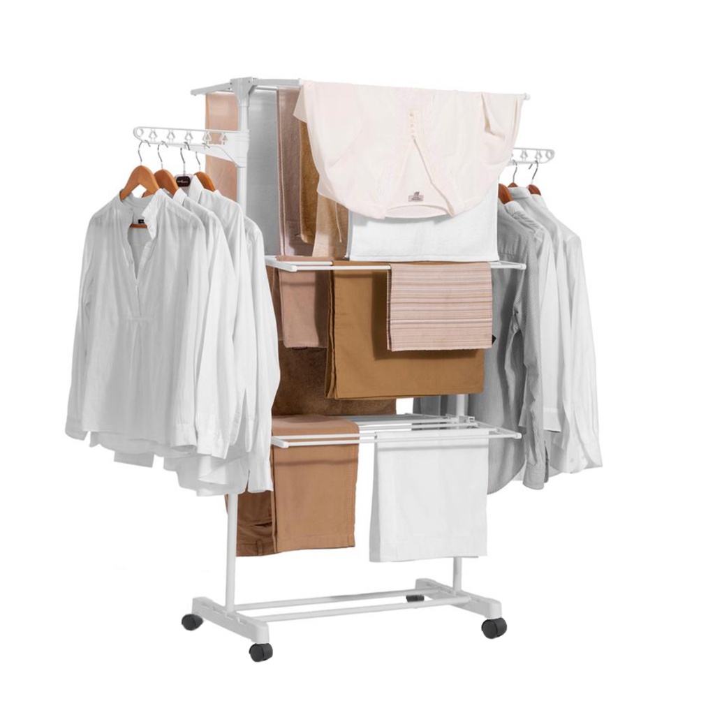 Der klappbare Wäscheständer von GEORGES bietet eine platzsparende Lösung für das Trocknen Ihrer Kleidung. Mit drei Ebenen und viel Trockenraum ermöglicht er Ihnen, mehr Wäsche gleichzeitig aufzuhängen. Die einfache Klappfunktion erleichtert zudem die Handhabung und Lagerung des Wäscheständers.