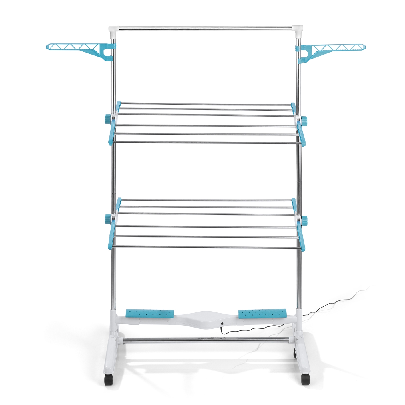 Dieser elektrische Wäscheständer eignet sich ideal für Haushalte mit begrenztem Platzangebot oder Menschen, die ihre Wäsche drinnen trocknen müssen. Durch seine Rollen ist er leicht zu bewegen und passt in jede Ecke. Das Gerät liefert gute Ergebnisse bei leichter Wäsche und überzeugt durch ein gutes Preis-Leistungs-Verhältnis. Trotz gemischter Kundenbewertungen kann der elektrische Wäscheständer sowohl Singles als auch Familien ansprechen.