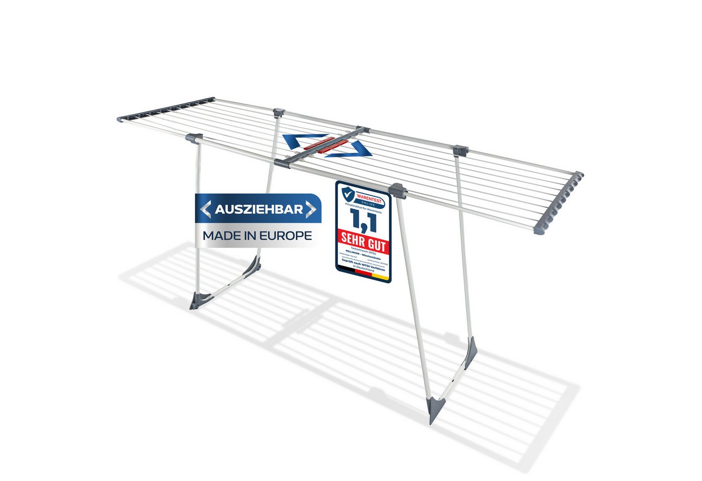 | Ausklappbare Flügel | - | ja | ja | ja | nein | ja | Ja, die Linomatic 500 Deluxe Cover verfügt über ausklappbare Flügel für eine optimale Nutzung der Leinen. | Ja | Ja | Ja | - | nein | 4-armiges faltbares Alugestell | Ja | ja | Ja | ja | Die Wäschespinne bietet eine große Trockenfläche unter ihrem großen Dach. | nein | Einstellmöglichkeit und zusammenklappbare Bügel | ja |