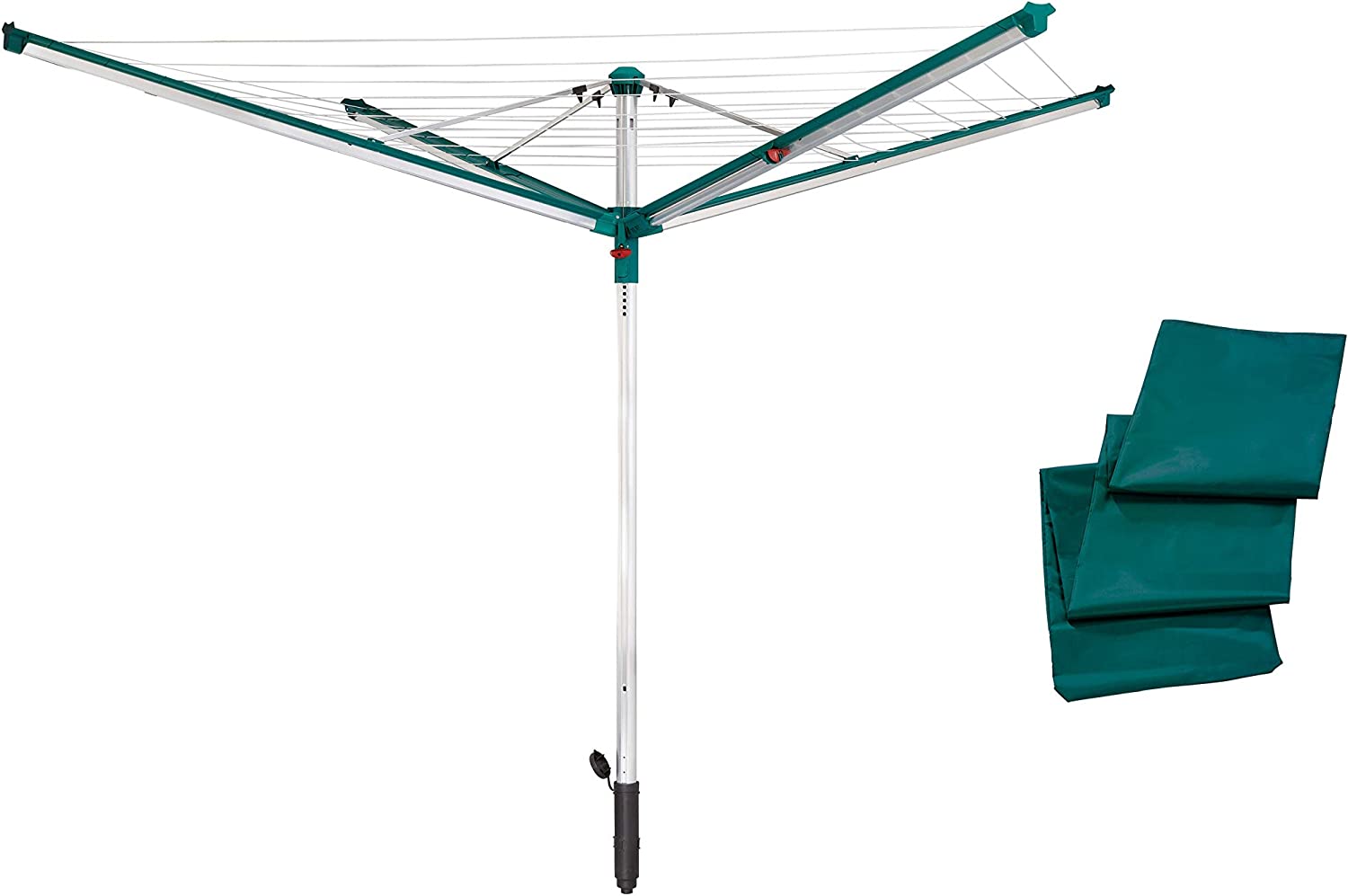 Das Leifheit Linomatic 500 Deluxe Cover ist eine Wäschespinne, die besonders für den Einsatz im Garten geeignet ist. Mit ihr können Sie Ihre Wäsche bequem und zeitsparend trocknen lassen. Die Spinne lässt sich einfach öffnen und schließen, was Ihnen Zeit spart.