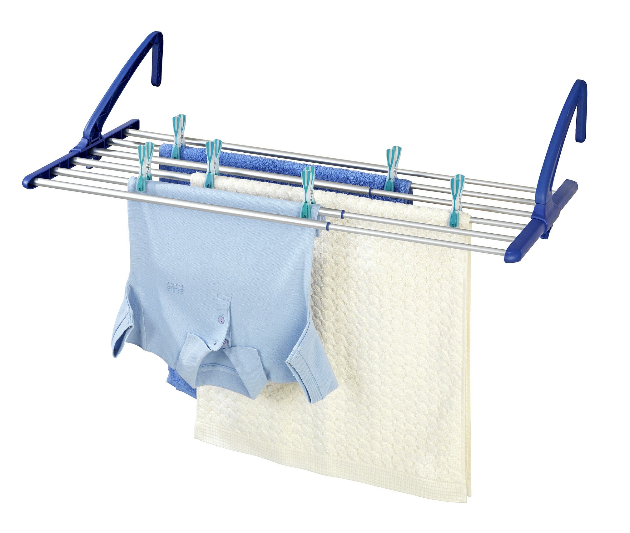 Der Teleskop Balkonwäschetrockner aus Aluminium von WENKO bietet eine praktische Lösung für das Trocknen von Wäsche auf Balkonen, Zimmertüren und Badewannen. Mit seiner einstellbaren Größe passt er gut für verschiedene Anwendungen und ist stabil sowie wertig gearbeitet. Die Teleskopfunktion wird als funktional empfunden und erleichtert den Gebrauch des Trockners.