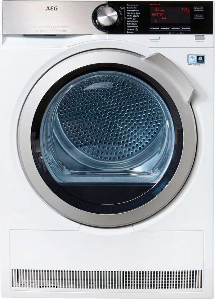 Der AEG Wärmepumpentrockner T8DE86685 bietet eine schnelle Trockenzeit und hohe Energieeffizienz, wodurch er sowohl Zeit als auch Kosten spart. Mit seinem hochwertigen Design und Materialien sowie benutzerfreundlicher Bedienung überzeugt er Kunden zudem in puncto Qualität und Komfort. Die gute Trockenleistung, vor allem bei Handtüchern und schwerer Kleidung, wird durch praktische Funktionen wie Trommelbeleuchtung und Trocknungserkennung unterstützt.
