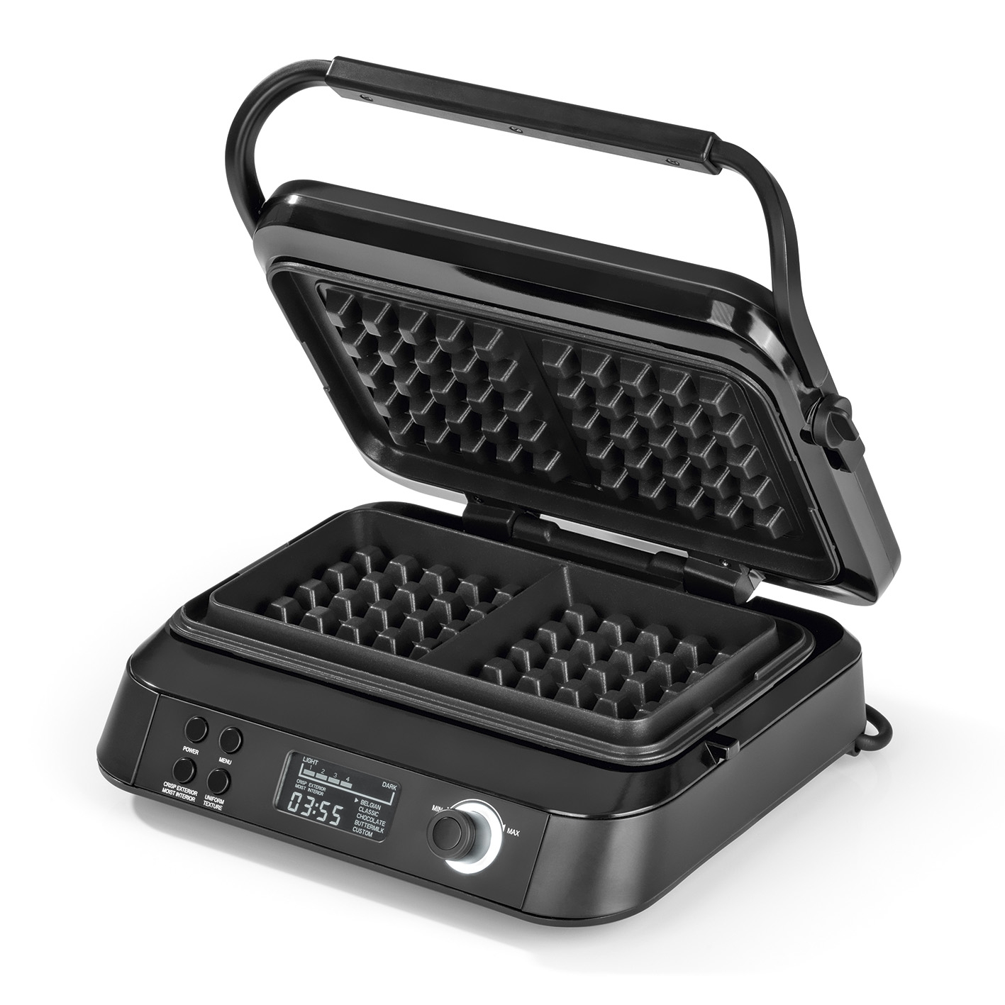 Bietet 5 Programme und 7 Bräunungsstufen für individuell angepasste Waffeln mit gleichmäßiger Bräunung.