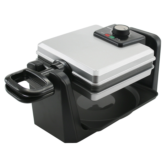 Drehmechanismus sorgt für gleichmäßige Teigverteilung und luftige Belgische Waffeln.