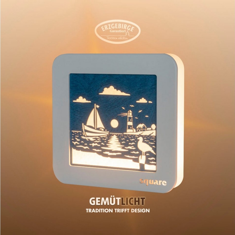 | Name | Weigla LED Dekolicht Square Wandbild Maritim, Batterie & Timer, WEIẞ-BLAU, Made in Germany, LED fest integriert, Neutralweiß, Erzgebirge garantiert, maritime Deko Innen, Dekolampe |
