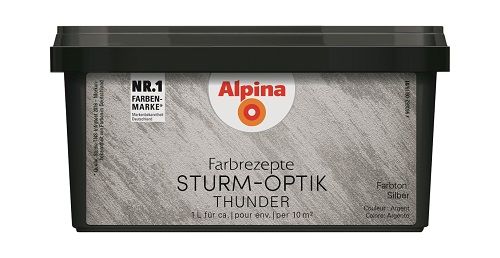 Die Alpina Effektfarbe Farbrezepte STURM-OPTIK in der silbernen Variante bietet eine leichte Verarbeitung, einen schönen Effekt und eine gute Deckkraft. Dank ihres Metallic-Effekts sorgt sie für eine ansprechende Optik an den Wänden. Zudem trocknet die Farbe schnell, was die Arbeitszeit verkürzt.