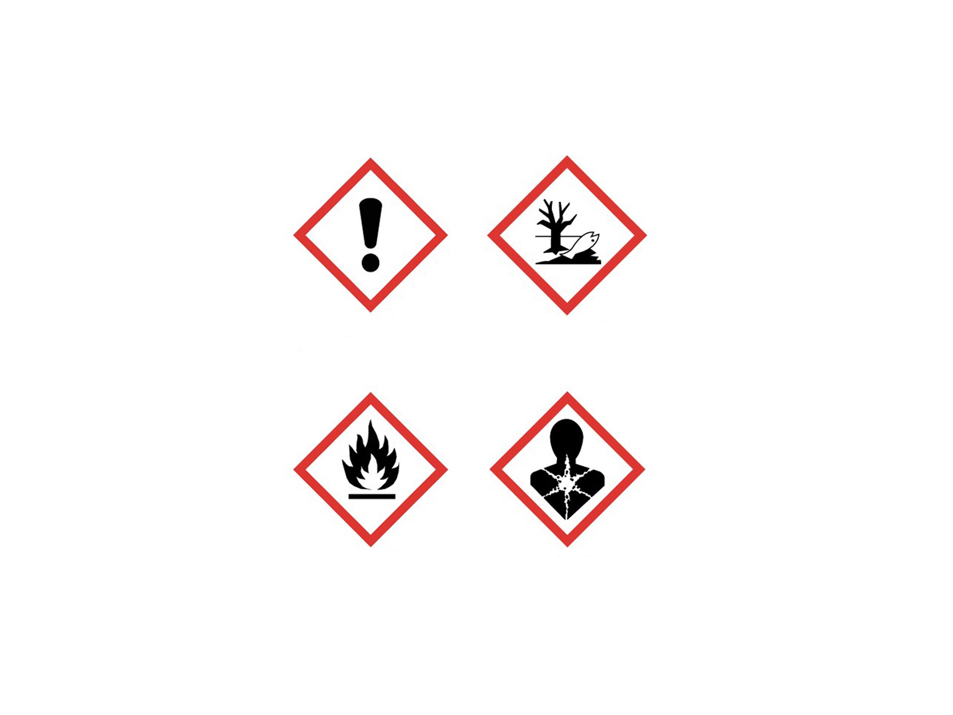 | Achtung - Gefahrenhinweis GHS07 | Reizend gilt für Sprays, Verdünner, Terpentin-Öl, Harze, Härter, Spachtelmasse |