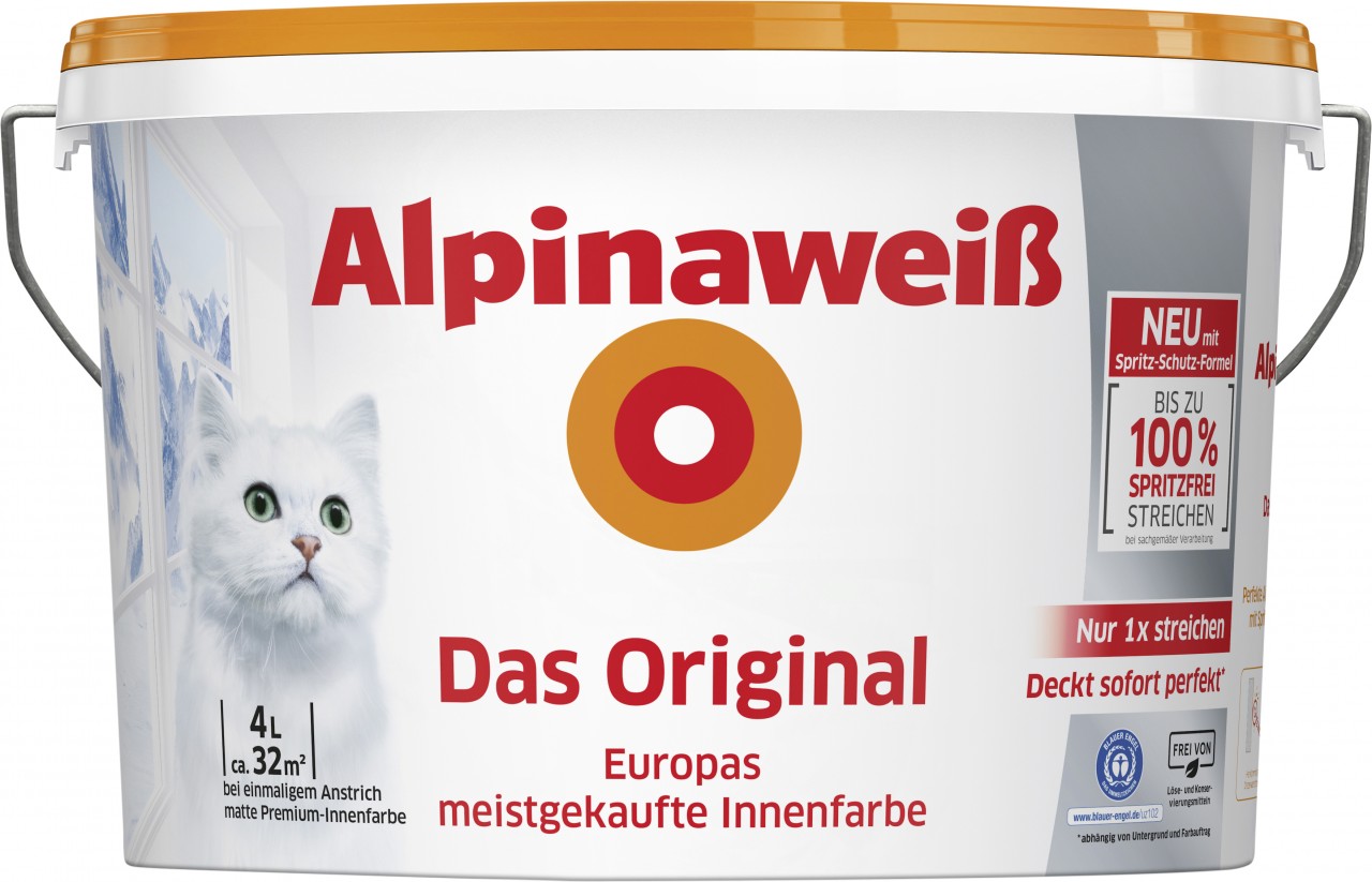 Alpinaweiß Das Original 4 l bietet eine exzellente Deckkraft und spritzt nicht, was zu einem schönen Anstrich führt. Oft reicht bereits ein einziger Anstrich aus, um dunkle Farben zu überdecken. Die Farbe sorgt für Spaß beim Renovieren und zeugt von guter Qualität.