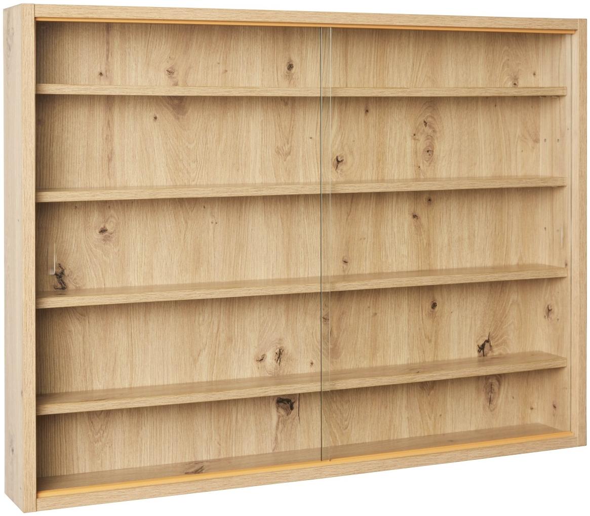 Die Sammlervitrine Setzkasten ARTISARIO in Eiche Artisan Nachbildung bietet Ihnen viel Platz zur stilvollen Präsentation Ihrer Sammlerstücke. Mit den Maßen B 80 cm x H 60 cm x T 9,5 cm und gefertigt aus Spanplatte, MDF und Sicherheitsglas, überzeugt sie durch ihr zeitloses Design und die praktische Funktionalität. Die beiden Glasschiebetüren ermöglichen einen einfachen Zugriff auf Ihre Lieblingsobjekte. **Highlights** - Viel Platz für Lieblingsstücke - Zeitloses Design - Vielseitig einsetzbar - Einfacher Aufbau - Inklusive Montageanleitung **Produkteigenschaften** - Material: Spanplatte, MDF, Sicherheitsglas - Farbe: Eiche Artisan Nachbildung - Maße: B 80 cm x H 60 cm x T 9,5 cm - Lichte Breite: 77 cm - Lichte Tiefe innen: ca. 7,4 cm - Fachtiefe: ca. 6,7 cm - Abstand vom Boden bis zum unteren Fachboden: ca. 9,5 cm - Abstand zwischen den Einlegeböden: ca. 5 cm - 4 Einlegeböden, 12 mm - Mit zwei Glasschiebetüren - Inkl. Wandbefestigung **Lieferumfang** - Sammlervitrine in Eiche Artisan Nachbildung - Bebilderte Montageanleitung - Lieferung ohne Dekoration