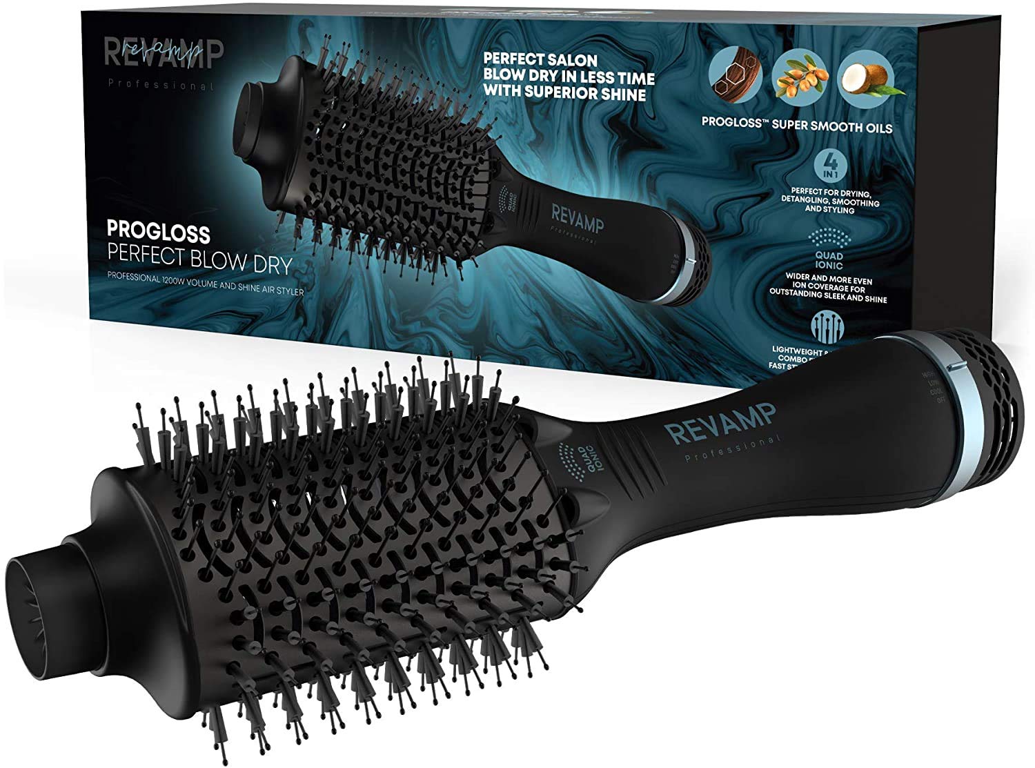 Die REVAMP DR-2000-EU Progloss Perfect Blow Dry Air Styler ist eine multifunktionale Bürste, die das Trocknen und Stylen der Haare in einem Schritt ermöglicht. Sie eignet sich besonders gut für dicke und lockige Haare und erzielt glänzende Ergebnisse. Nutzer schätzen die einfache Handhabung, vor allem wenn sie Schwierigkeiten mit dem gleichzeitigen Föhnen und Stylen haben. Allerdings gibt es einige Bedenken hinsichtlich der Handhabung des Griffs, der Wärmeentwicklung nach längerer Nutzung und der Langlebigkeit des Produkts.