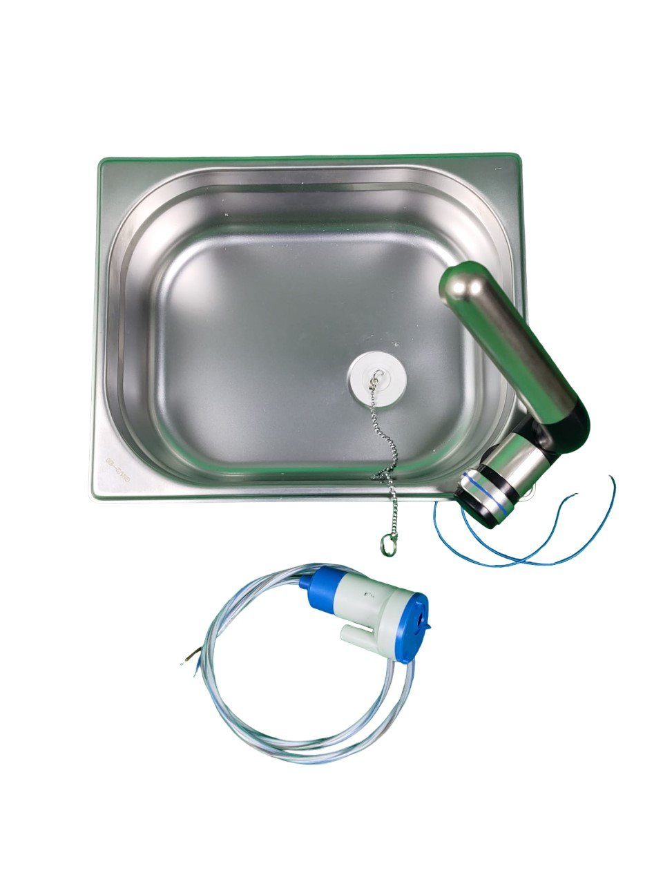SRM Design Waschbecken Camping Spüle Waschbecken – 4-tlg. mit Automatikwasserhahn und Tauchpumpeaus Edelstahl