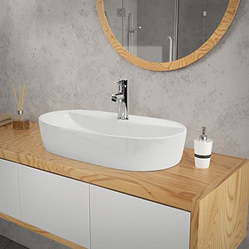 ML-Design Waschbecken aus Keramik in Weiß glänzend 60 x 40 x 12 cmOval, Moderne Aufsatzwaschbecken, Design Waschtisch Aufsatz-Waschschale Waschplatz Handwaschbecken, für das Badezimmer/Gäste-WC
