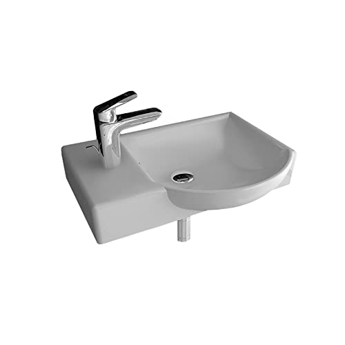 Alpenberger Design Waschplätze | Kleiner Waschtisch Rechteckig – Oval | Wandwaschbecken - Einbauwaschtisch | Gaestewaschbecken Standard Anschlüsse | Badkeramik mit Hahnloch & Überlauf | Spülbecken