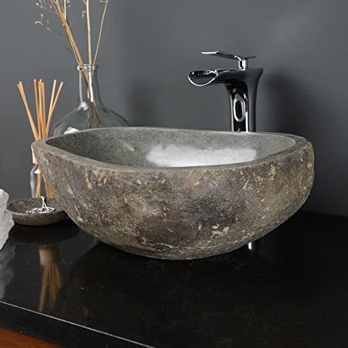 • Das 40 cm ovale Naturstein Waschbecken in grau von WOHNFREUDEN ist ein auffälliges Unikat aus Flussstein, das von Hand poliert wurde