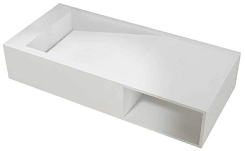 BERNSTEIN Wand-Waschbecken PB2088-100 x 46 x 20 cm Weiß Matt - Mineralguss-Waschtisch Solid Stone - Hänge-Waschbecken mit Ablaufrinne und Ablagefach