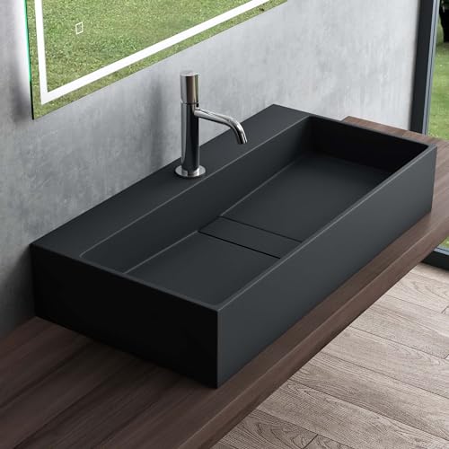 Mai & Mai Aufsatz-waschbecken Col6028 Hängewaschbecken 80x40x14cm in Anthrazit matt mit Hahnloch