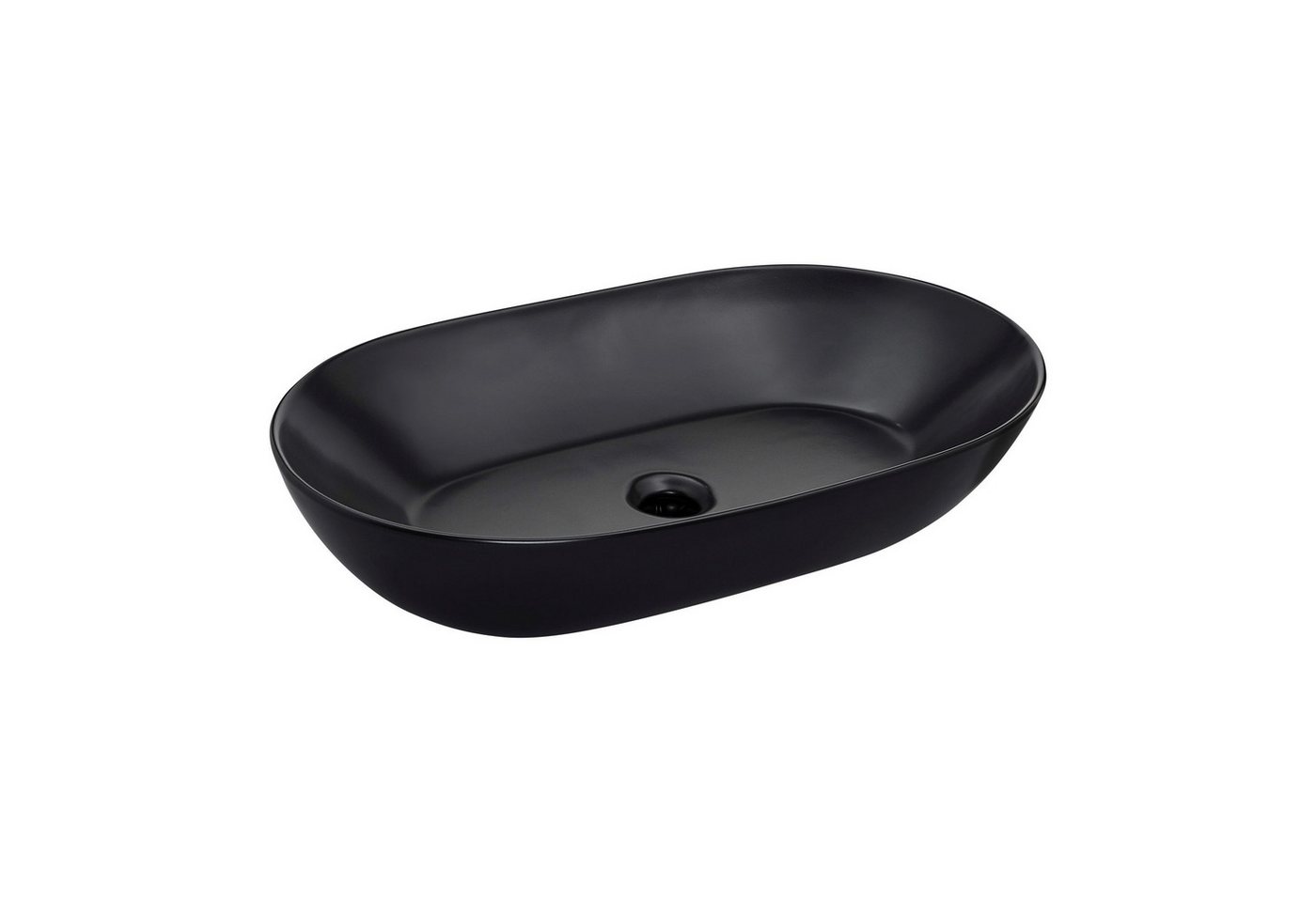 SCHÖNER WOHNEN-Kollektion Waschbecken SATI ovalKeramik, Mattschwarz, 60 x 42 x 14,5 cm, Aufsatzwaschbecken mit Überlauf