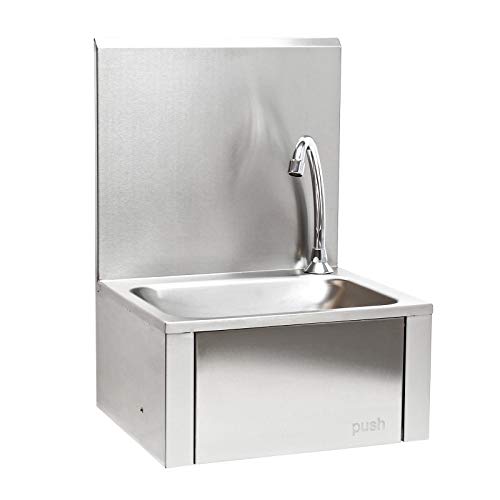 XPOtool Edelstahl Gastro Waschbecken mit quadratischem InnenbeckenSpritzschutz zur Wandmontage, für Gastronomie Küche Werkstatt, robuste Konstruktion, hygienische Lösung, vielseitige Anwendung, optimale Arbeitsumgebung, 390 x 355 x 565 mm, silber