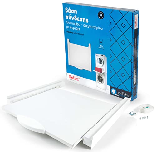 JT-Lizenzen Roller Verbindungsrahmen mit Ablage für Waschmaschine Trockner 60x60 cm Weißplatzsparend, max. 20 kg Tragkraft der Ablage