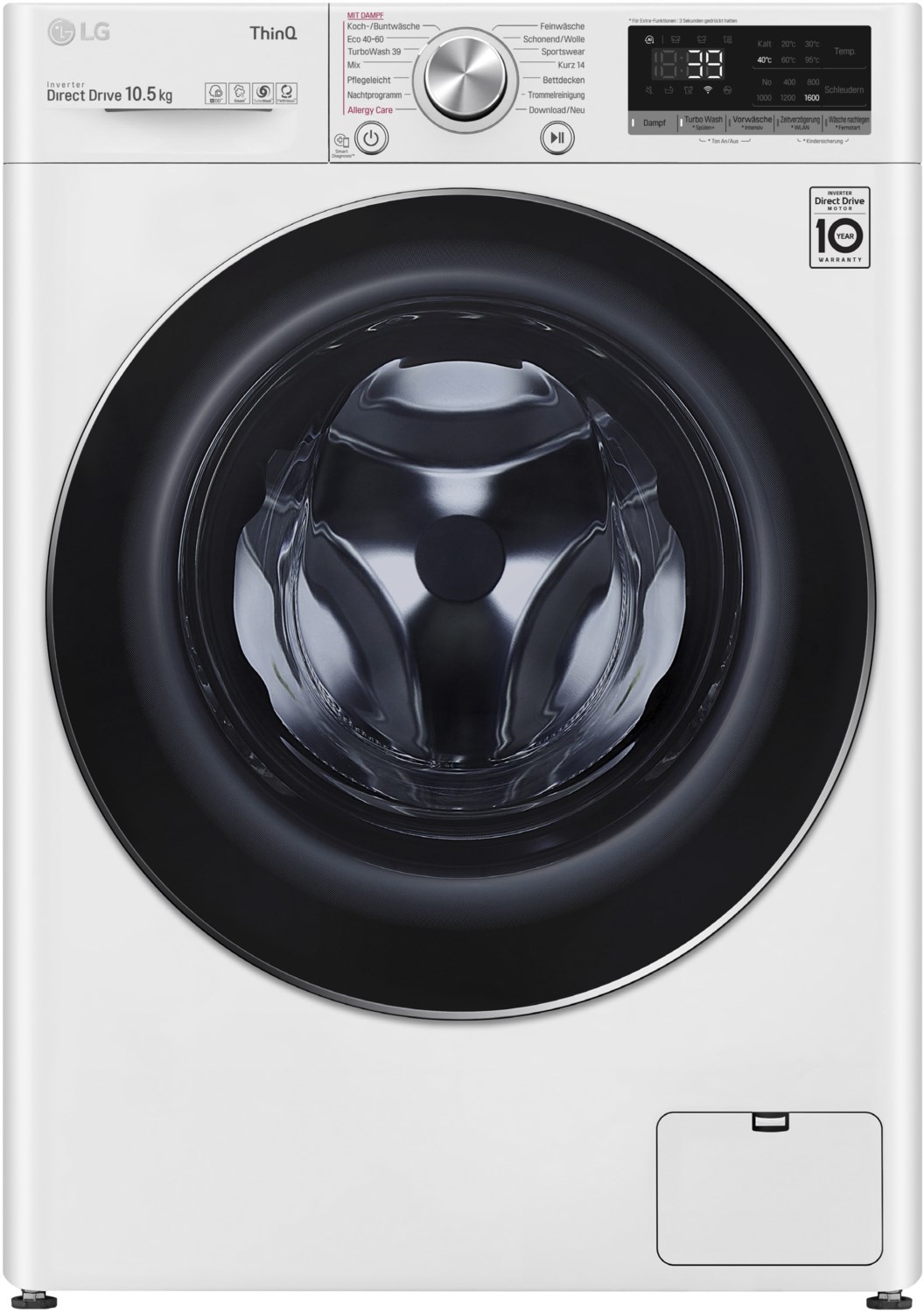 Mit der LG F6W105A bekommen Verbraucherinnen und Verbraucher eine Waschmaschine für große Haushalte. Mit einem Fassungsvermögen von 10,5 Kilogramm reicht dieses Modell sogar für einen 5-Personen-Haushalt. Neben dem Fassungsvermögen punktet das Gerät vor allem durch seine moderne Ausstattung. Allergiker oder Sportler bekommen für ihre Wäsche Spezialprogramme und auch Schnellwaschvorgänge sind möglich.