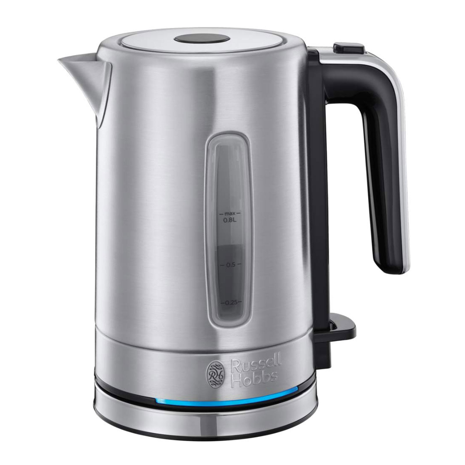 Der Russell Hobbs Mini-Wasserkocher Compact Edelstahl bietet eine schnelle und leise Erhitzung des Wassers sowie eine tropffreie Ausgießung. Dank seiner kompakten Größe eignet er sich ideal für kleine Küchen oder den Einsatz im Büro. Auch auf Reisen ist der Mini-Wasserkocher ein praktischer Begleiter, da er platzsparend verstaut werden kann. Die einfache Reinigung rundet das positive Nutzungserlebnis ab.