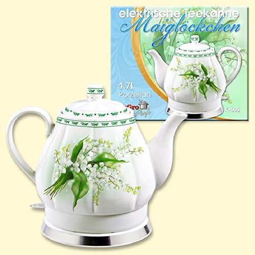 Der Wasserkocher Porzellan Maiglöckchen 1 besticht durch sein hübsches Design und seine hochwertige Verarbeitung. Mit einer guten Wärmeisolierung und einem sicheren Deckel ist er ideal für diejenigen, die gerne Tee oder Kaffee in ihrer gemütlichen Küche im Landhausstil zubereiten möchten.